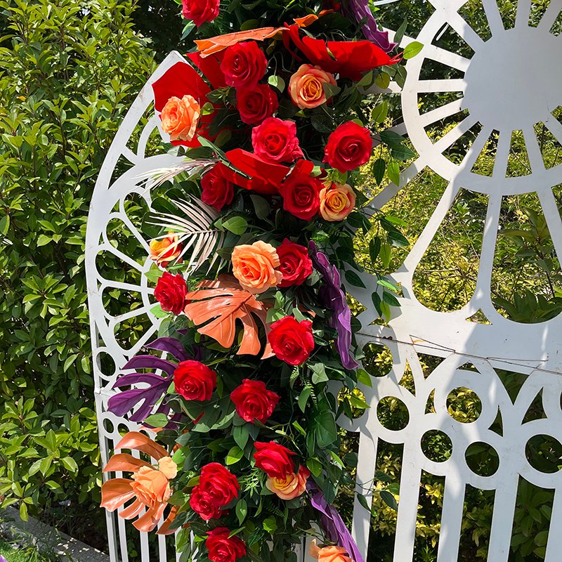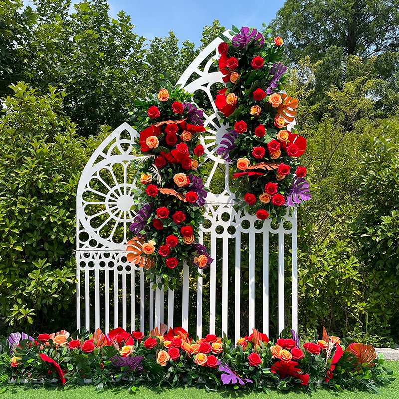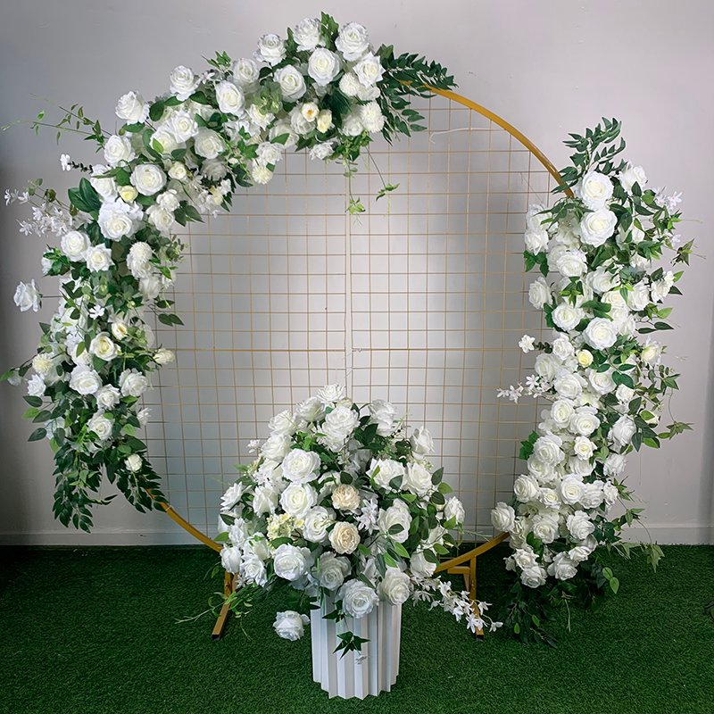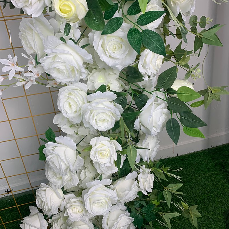 FB1006 White roses with leaves flower backdrops set for wedding decoration