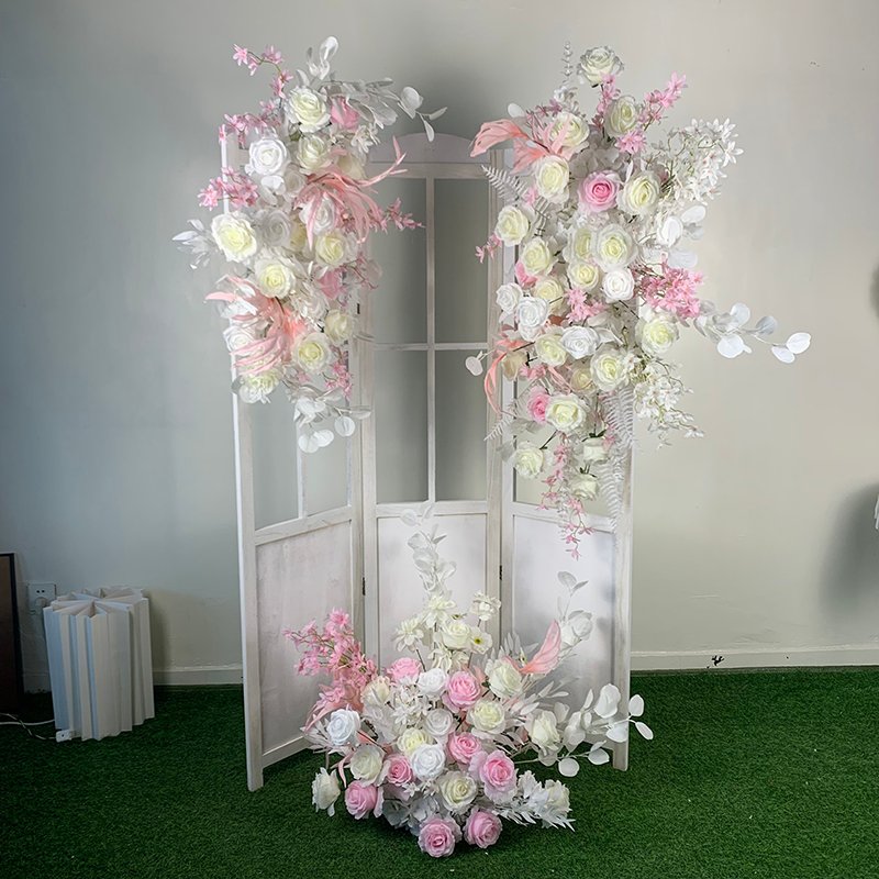 FB1011 White and pink roses hydrangeas flower backdrops set for wedding decoration