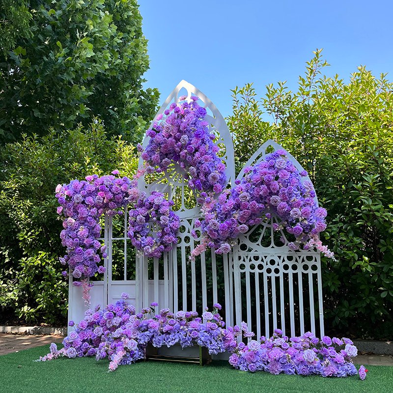 FB1013 Purple white roses flower backdrops set for wedding decoration