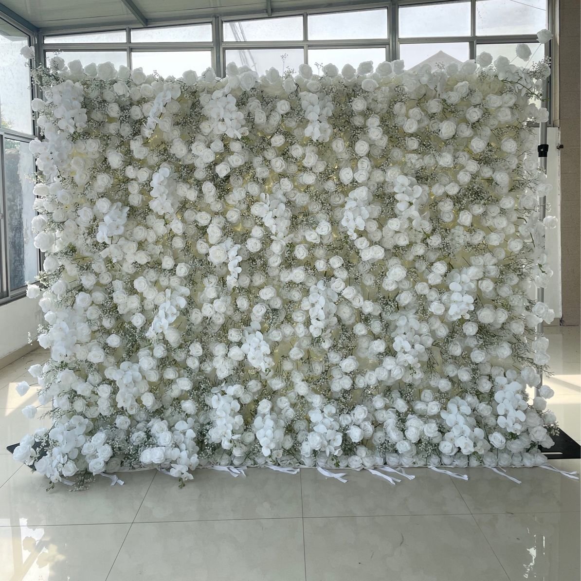 FW120 White roses with gyp flower wall backdrop 8x8ft cloth fabric backup