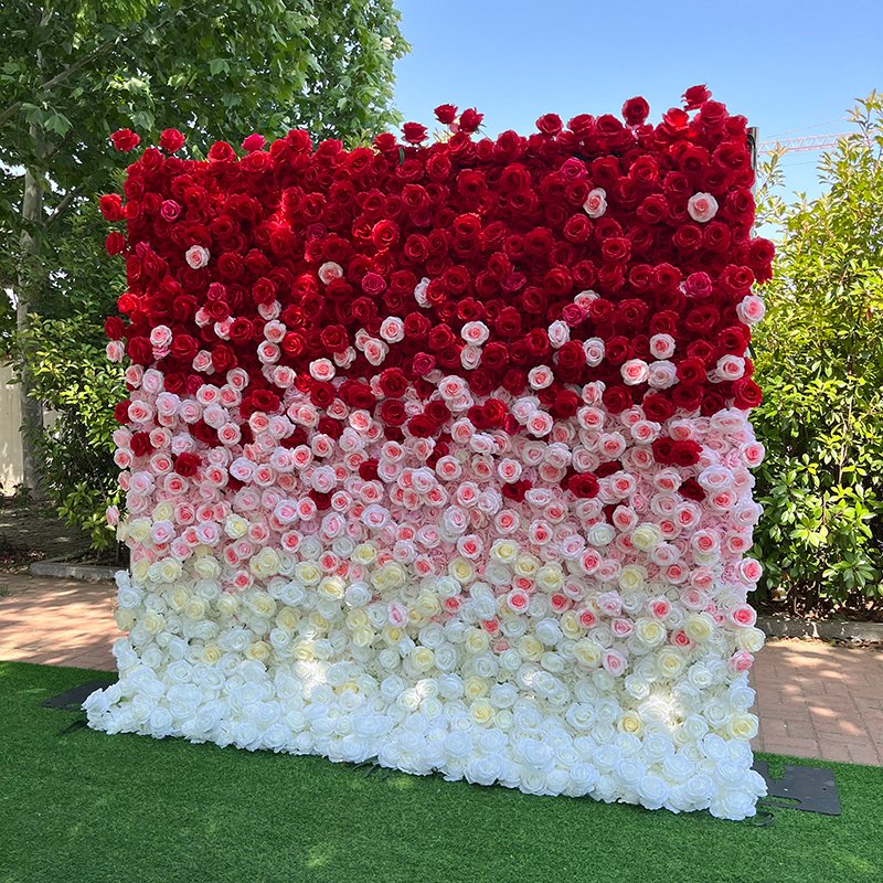 FW023 White and red roses ombre flower wall backdrop 8x8ft cloth fabric backup