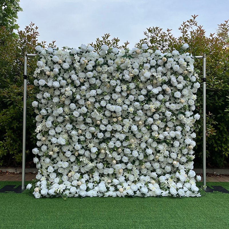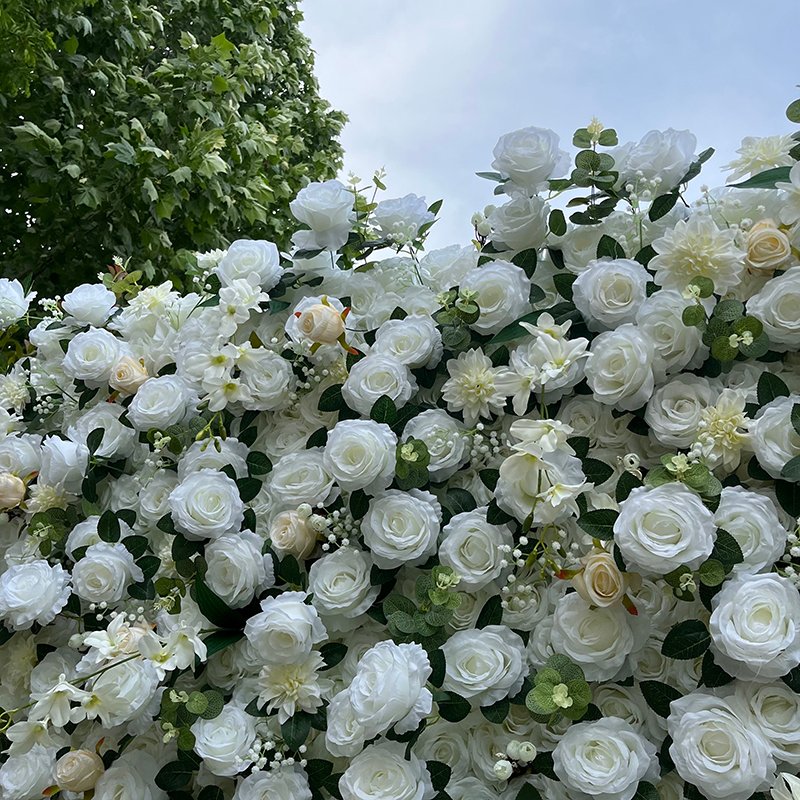 FW018 White roses with leaves flower wall backdrop 8x8ft cloth fabric backup
