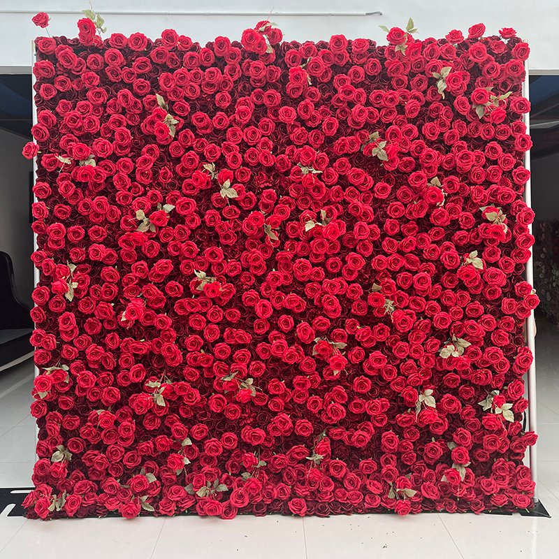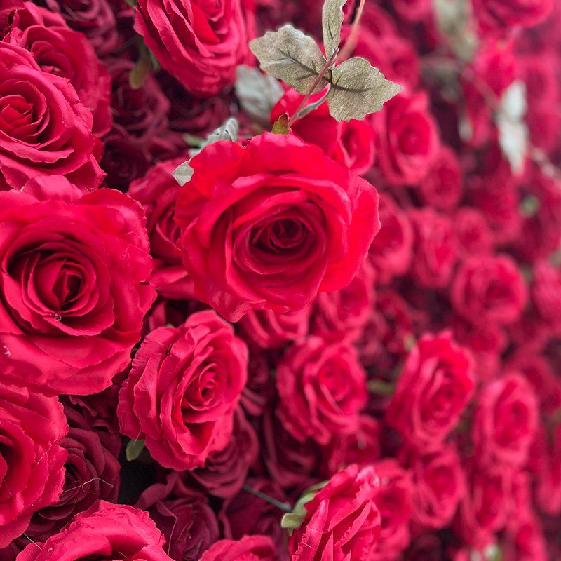 FW020 Red roses with gray leaves flower wall backdrop 8x8ft cloth fabric backup