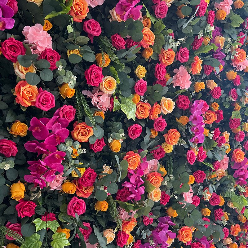 FW016 Colorful roses with leaves flower wall backdrop 8x8ft cloth fabric backup