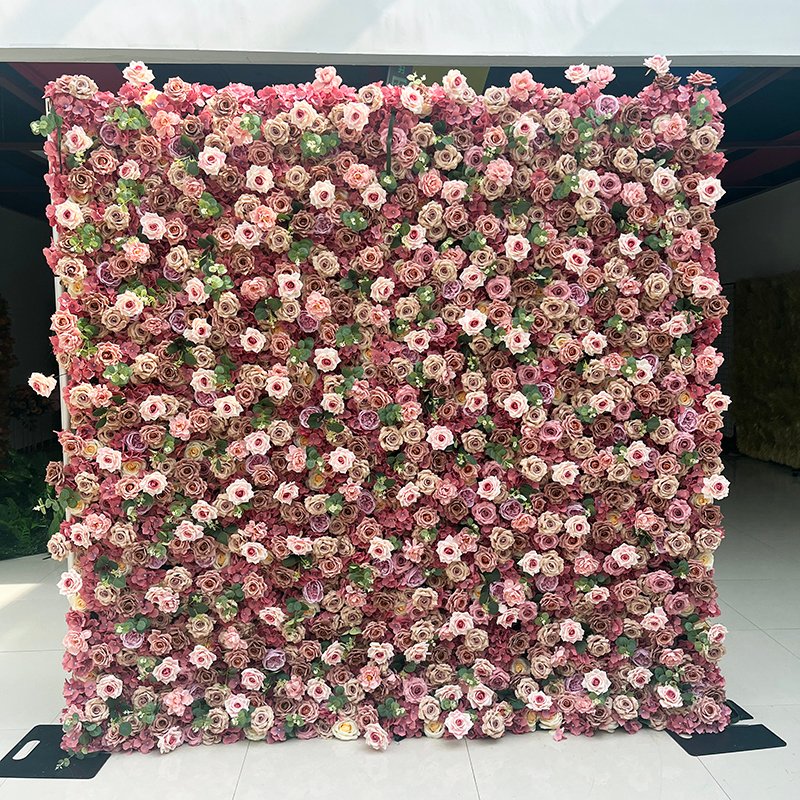 FW015 Pink rose hydrangea flower wall backdrop 8x8ft cloth fabric backup