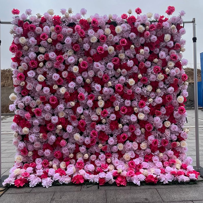 FW034 Pink mix hot pink roses flower wall backdrop 8x8ft cloth fabric backup