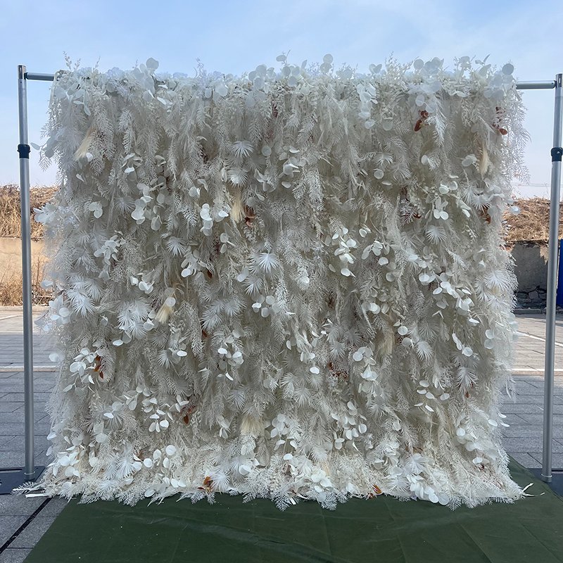 FW036 White plants pampas flower wall backdrop 8x8ft cloth fabric backup