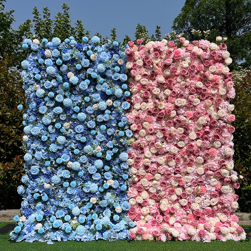 FW099 Pink and blue flower wall backdrop 8x8ft cloth fabric backup
