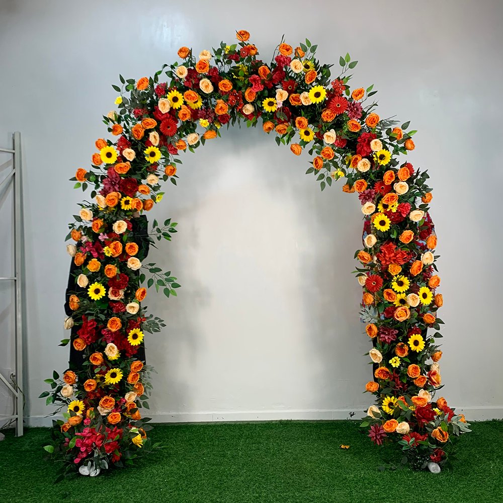 FA027 Yellow orange roses with leaves flower arch 6ft 7ft 8ft