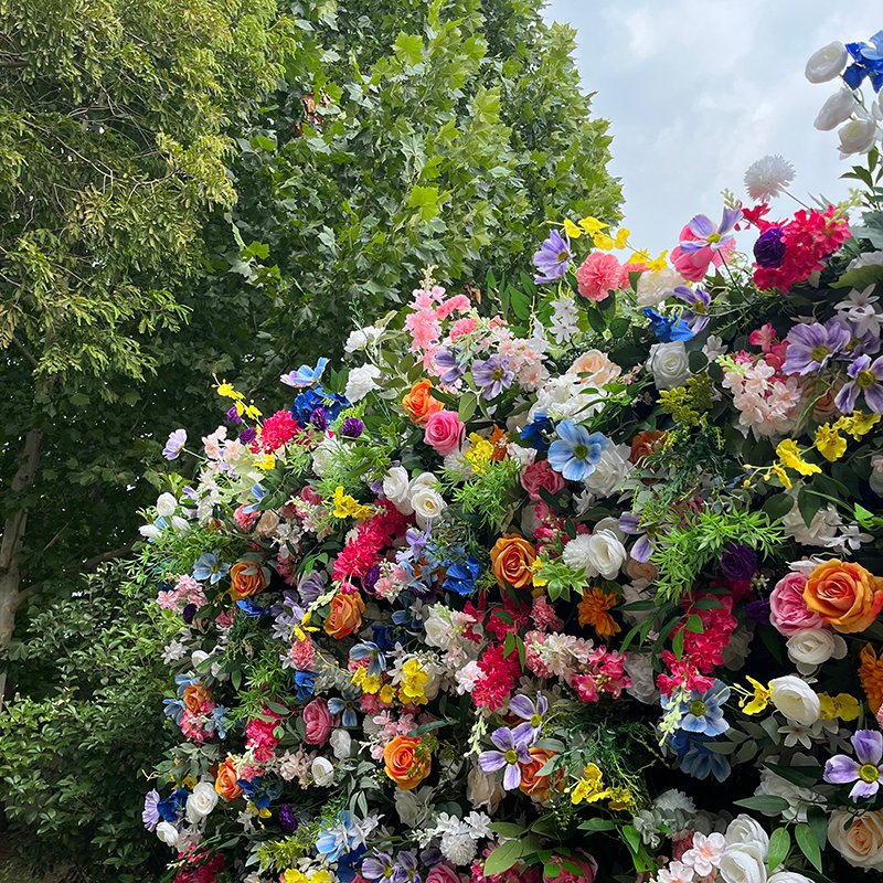 FW003 colorful flowers with leaves flower wall backdrop 8x8ft cloth fabric backup