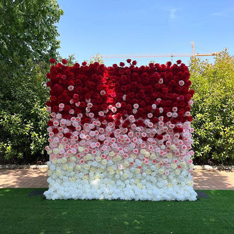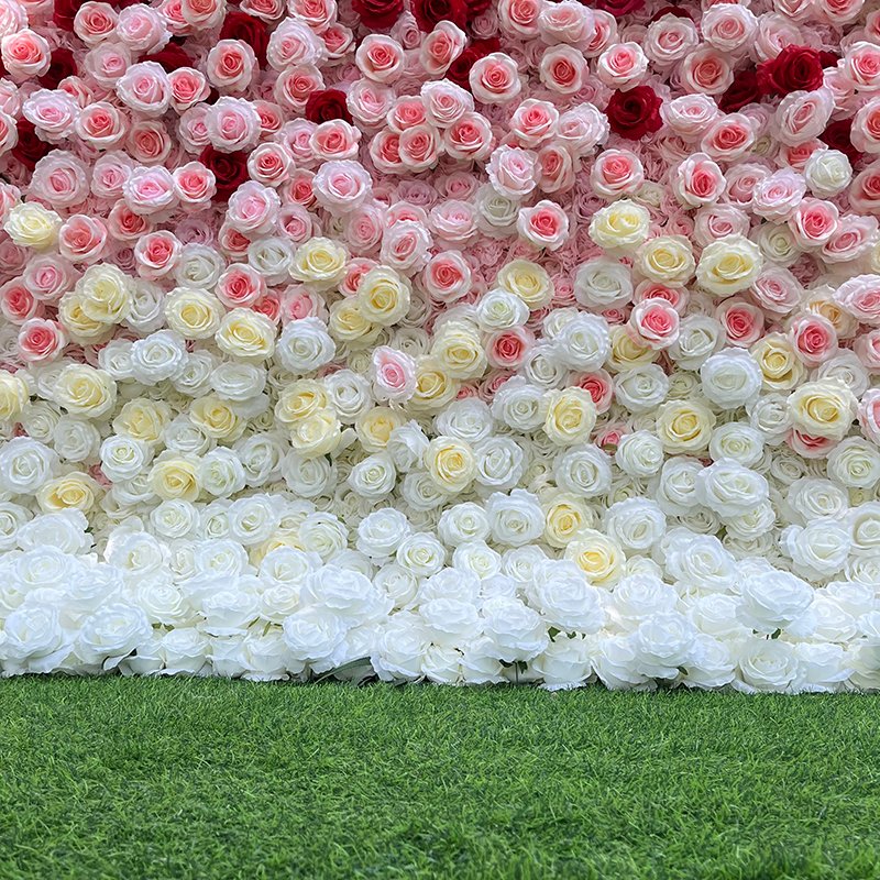 FW014 Red pink white roses ombre flower wall backdrop 8x8ft cloth fabric backup