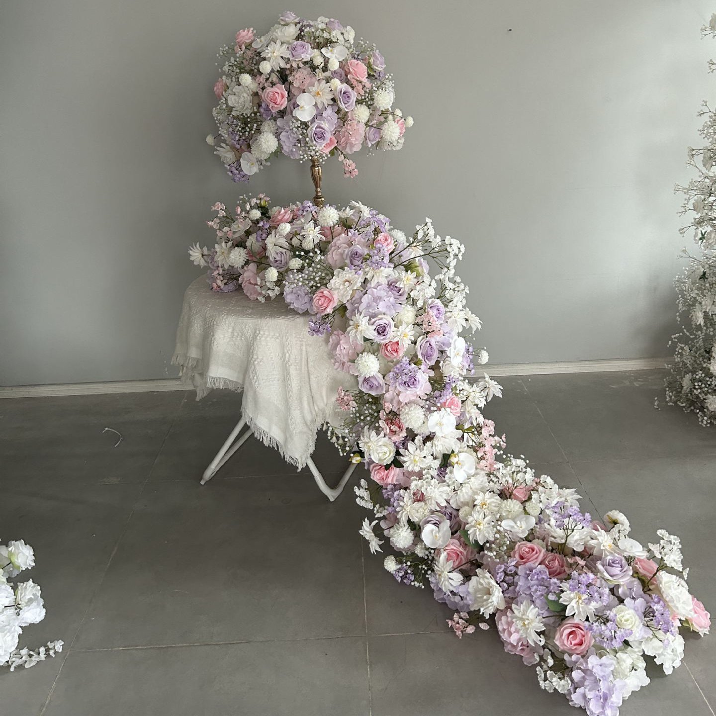Be the first to review “TR0034 White and lilac roses table runner for wedding decoration”
